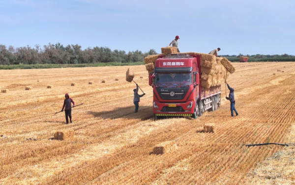 8月4日,在福??h闊克阿尕什鄉北平社區的麥田里,大型聯合收割機開足馬力穿梭其間,將飽滿的小麥“吞進腹中”,一氣呵成完成收割、脫粒、分離,金燦燦的麥粒傾瀉而下,源源不斷涌入等候的運輸車。而在不遠處已完成收割的地塊上,秸稈打包機像一條不知疲倦的“貪吃蛇”,將散落的麥稈卷入口中,一個個敦實整齊的金黃色秸稈壓塊隨之“吐出”,有序排列在田壟間。村民們忙著裝車,繁忙的景象里滿是豐收的喜悅。福??h闊克阿尕什鄉闊克卓爾尕村村民葉斯哈提·鐵克斯別克說:“這塊地的秸稈我們春天就定下來了,現在麥子收完,正好打包拉走,冬天養殖就不愁飼料了。”