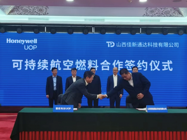 霍尼韋爾宣布山西佳新通達科技有限公司(以下簡稱“山西佳新通達科技”)采用霍尼韋爾Ecofining™工藝技術、催化劑和設備,在山西省晉中市打造這一傳統能源大省的首個可持續航空燃料(SAF)項目,裝置年處理能力將達15萬噸。此次合作表明霍尼韋爾正積極響應包括能源轉型在內的三大發展趨勢。